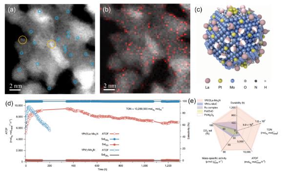 研究團隊創(chuàng)造性地在Pt/γ-Mo?N催化劑表面構筑鑭系氧化物納米覆蓋層,形成三重防護機制: