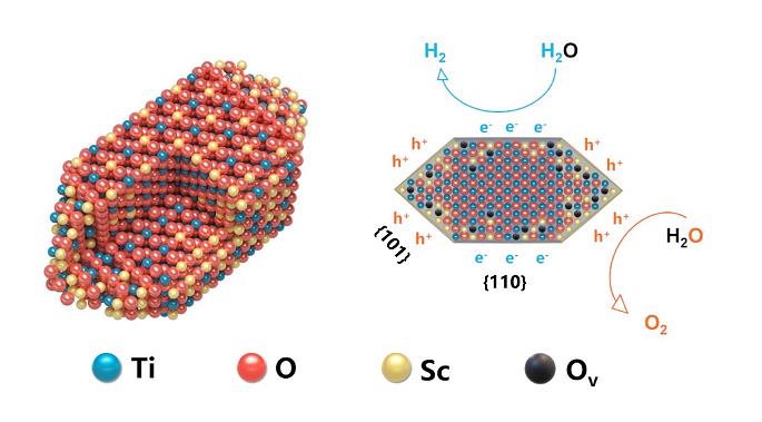 鈧摻雜氧化鈦晶體結(jié)構(gòu)和光解水反應(yīng)示意圖